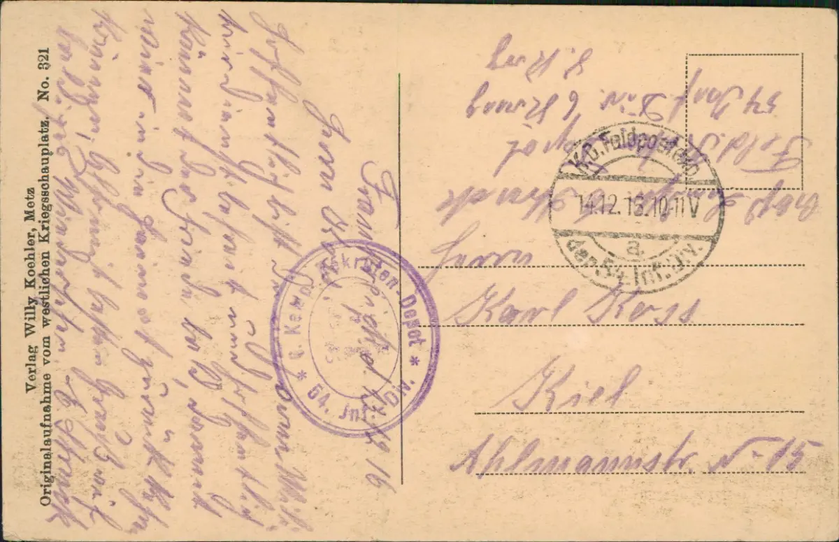 1. Weltkrieg Feldpost gelaufen (Briefstempel)
