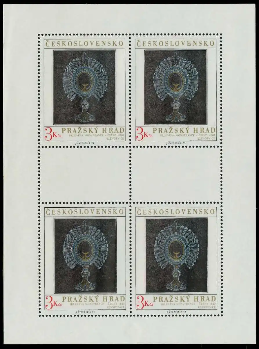 Kleinbogensatz Prager Burg, Bogen mit Nr. 2202 im Rand kleiner Knick, läßt sich aber abschneiden um 5mm dann glatt, kleine Umebenheiten