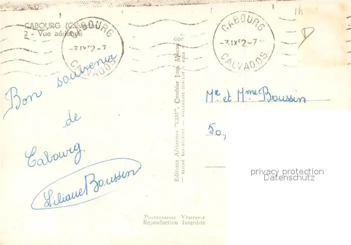 Cabourg Plage Hotels vue aérienne Cabourg postalisch gelaufen 1952 Erhaltung siehe scans [FriedD77] Frierer