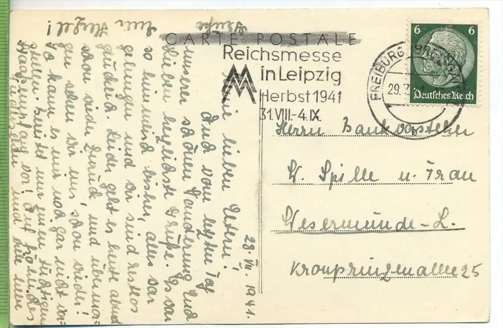 mit Frankatur, mit Stempel, FREIBURG-BREISGAU 29.7.41
