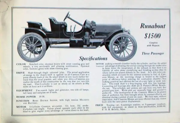 Cameron Cars Model 11 Modellprogramm 1909 Automobilprospekt (8983)