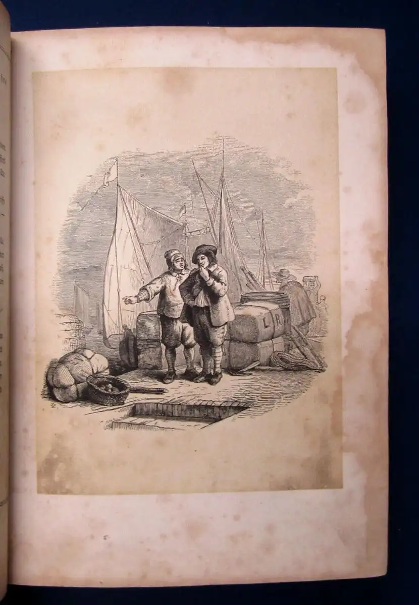 Block schief gelesen, Rücken beschädigt jedoch noch nicht lose. Ecken stärker bestoßen. Papier gering gebräunt und vermehrt braunfleckig sowie auf den ersten 4 Seiten am Rande des Papiers wasserfleckig. Noch gutes Exemplar. Bilder sind ein Bestandteil der Zustandsbeschreibung. Zustand wurde bereits im Preis berücksichtigt.