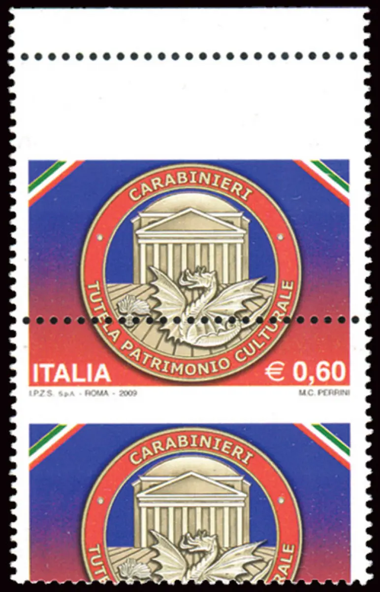 Kommando Carabinieri Sorte verschobene Verzahnung Vollgummi - MHN - - - Kommando Carabinieri Nr. 3083 vertikales Paar b. von f. oben mit stark verschobener horizontaler Verzahnung (Kat. Einheitliche Nr. 3135Ba - 3135 Da) - Kat. euro 160 Cod. 916/14