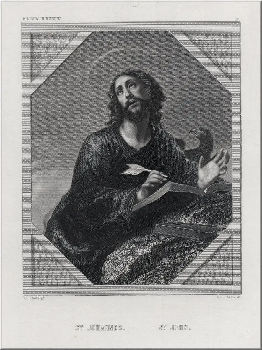 Carlo Dolci. St. Johannes . Originaler Stahlstich von Payne um 1870