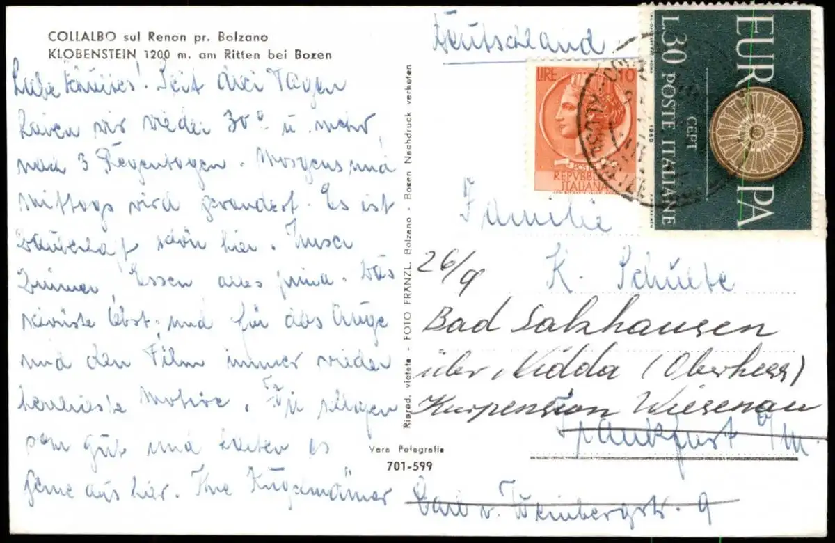 Cartolina Klobenstein-Ritten Collalbo Renon Srtadtblick bei Bozen 1968