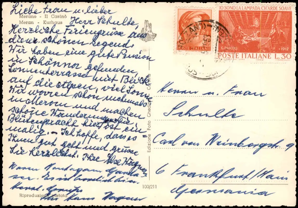 Cartolina Meran Merano Partie am Kurhaus 1963