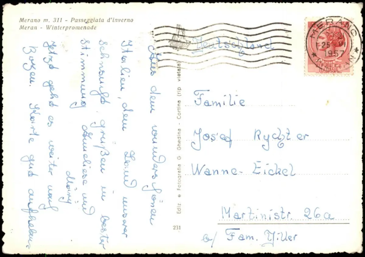 Cartolina Meran Merano Winterpromenade 1957