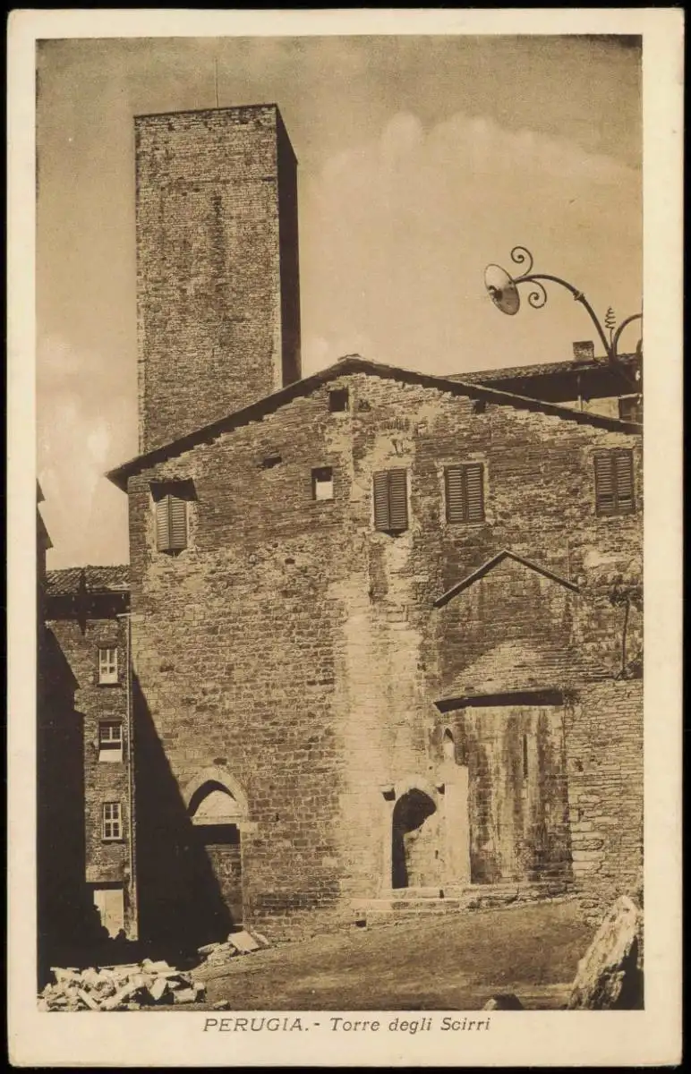 Cartolina Perugia Ortsansicht Torre degli Scirri (Turm-Gebäude) 1920
