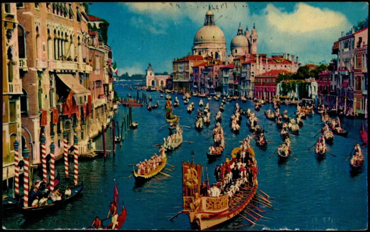Cartolina Venedig Venezia Canal Grande Prozession 1961