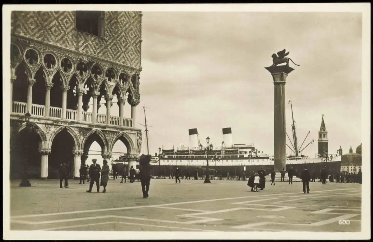 Cartolina Venedig Venezia Markusplatz Dampfer Steamer 1930