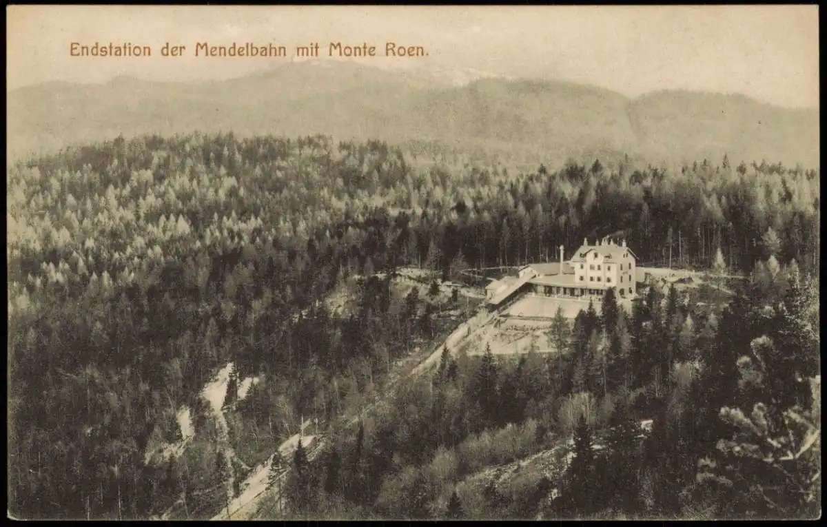 Cartoline Bozen Bolzano Endstation der Mendelbahn mit Monte Roen. 1912 Südtirol