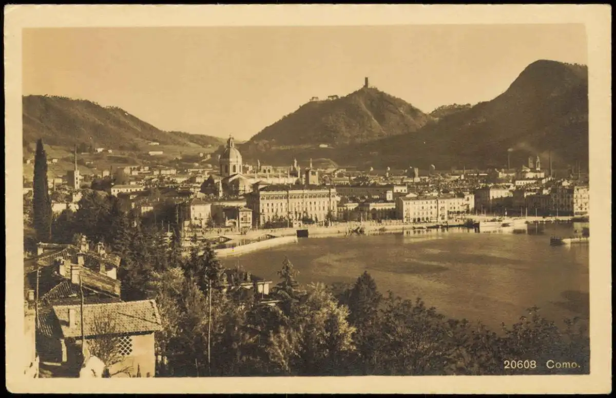 Cartoline Como Panorama-Ansicht, Stadtansicht aus der Vogelschau 1910