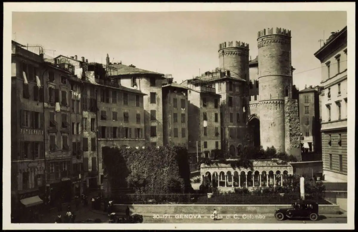 Cartoline Genua Genova (Zena) Stadtteilansicht Casa di C. Colombo 1930