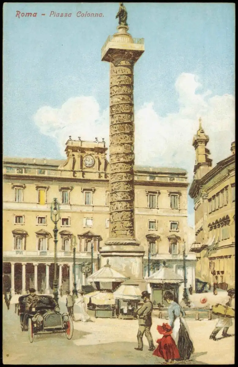 Name: Roma Piazza Colonna, altes Auto (Künstlerkarte)