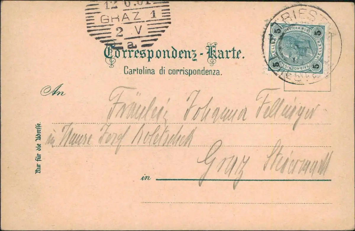 Cartoline Triest Trieste Hafen Dampfer Steamer 1901 Ankunftsstempel Graz