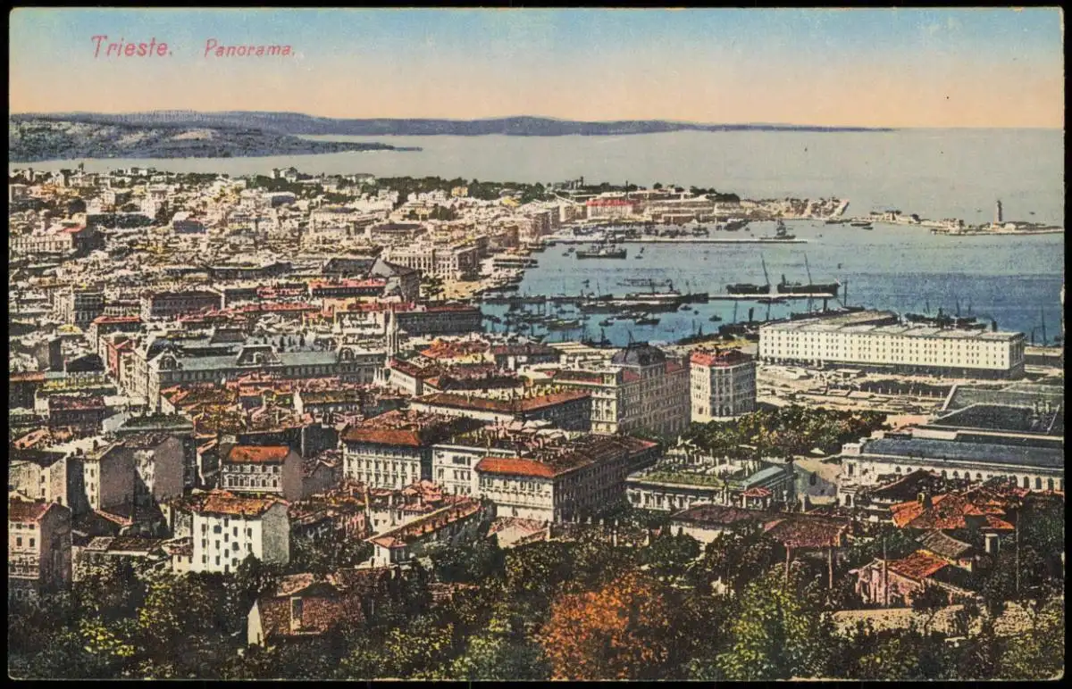 Cartoline Triest Trieste Panorama-Ansicht, Stadt, Hafen, Meer-Blick 1910