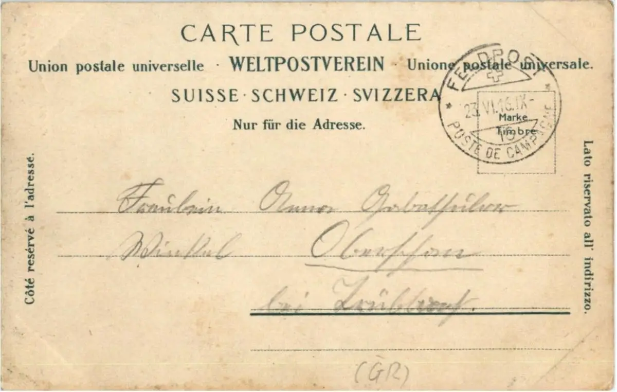 Danke. Alles Bestens. Können Sie mir allenfalls mitteilen, aus welchem Jahr die Postkarte stammt? Besten Dank.