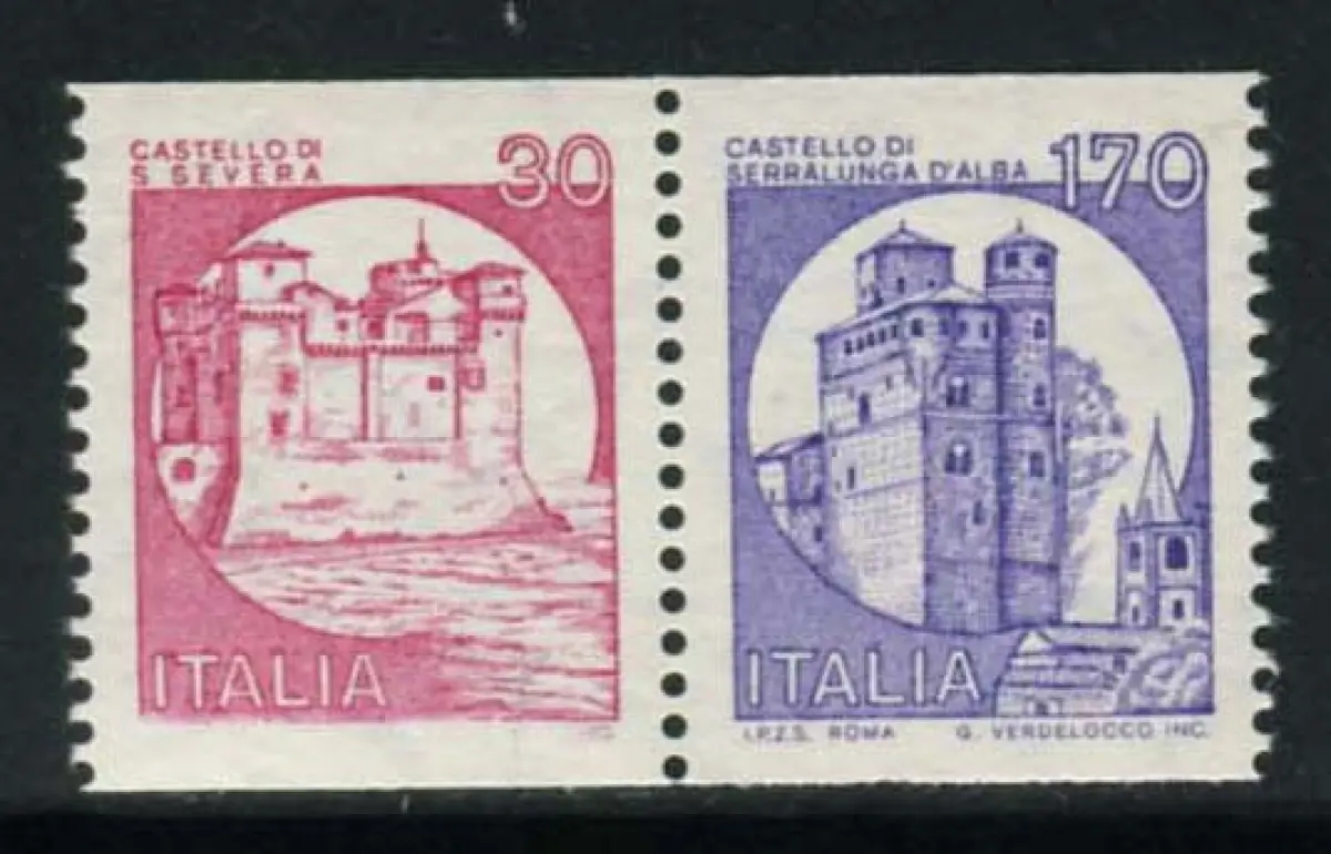 Castelli Lire 30 + 170 ohne IPZS-Schrift - Roma Gomma Integra - Castelli Lire 30 + 170 Nr. 1528 die beiden Werte in der Spule ausgegeben, die 30 Lire ist ohne Schriftzug unten im Namen des IPZS-Gravierers - Rom (Sass. Spec. n. 1150Aa) - Uncommon Code 564/7