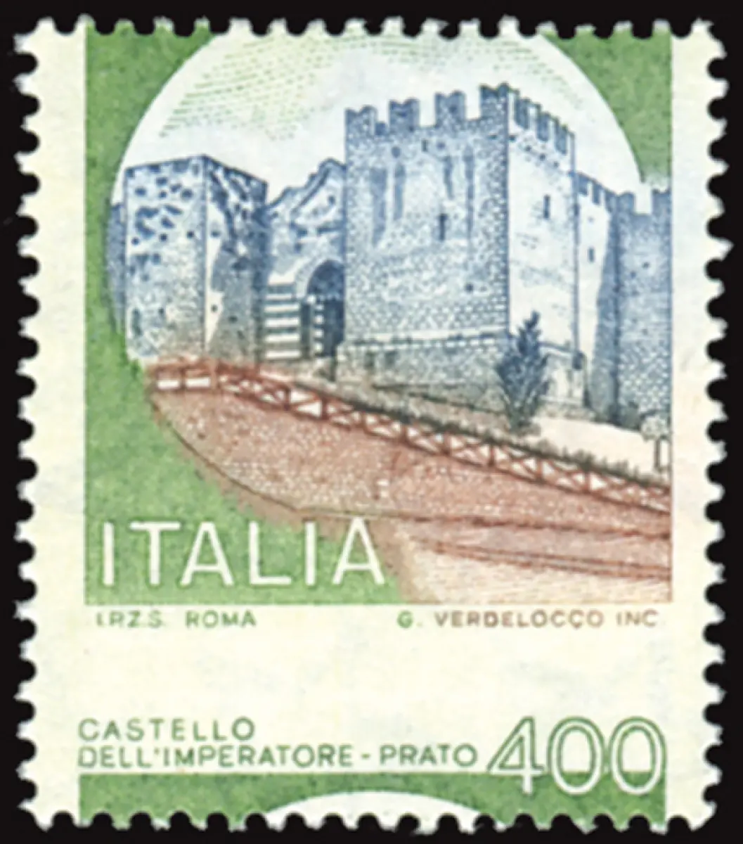 Castelli Lire 400 Sorten Wert unten Vollgummi MNH - Castelli Lire 400 Nr. 1520 stark verschobene horizontale Verzahnung Kaiserburg 400 unten (Sass. spec. Nr. 1137 Ec) - Uncommon Cod. 602/16