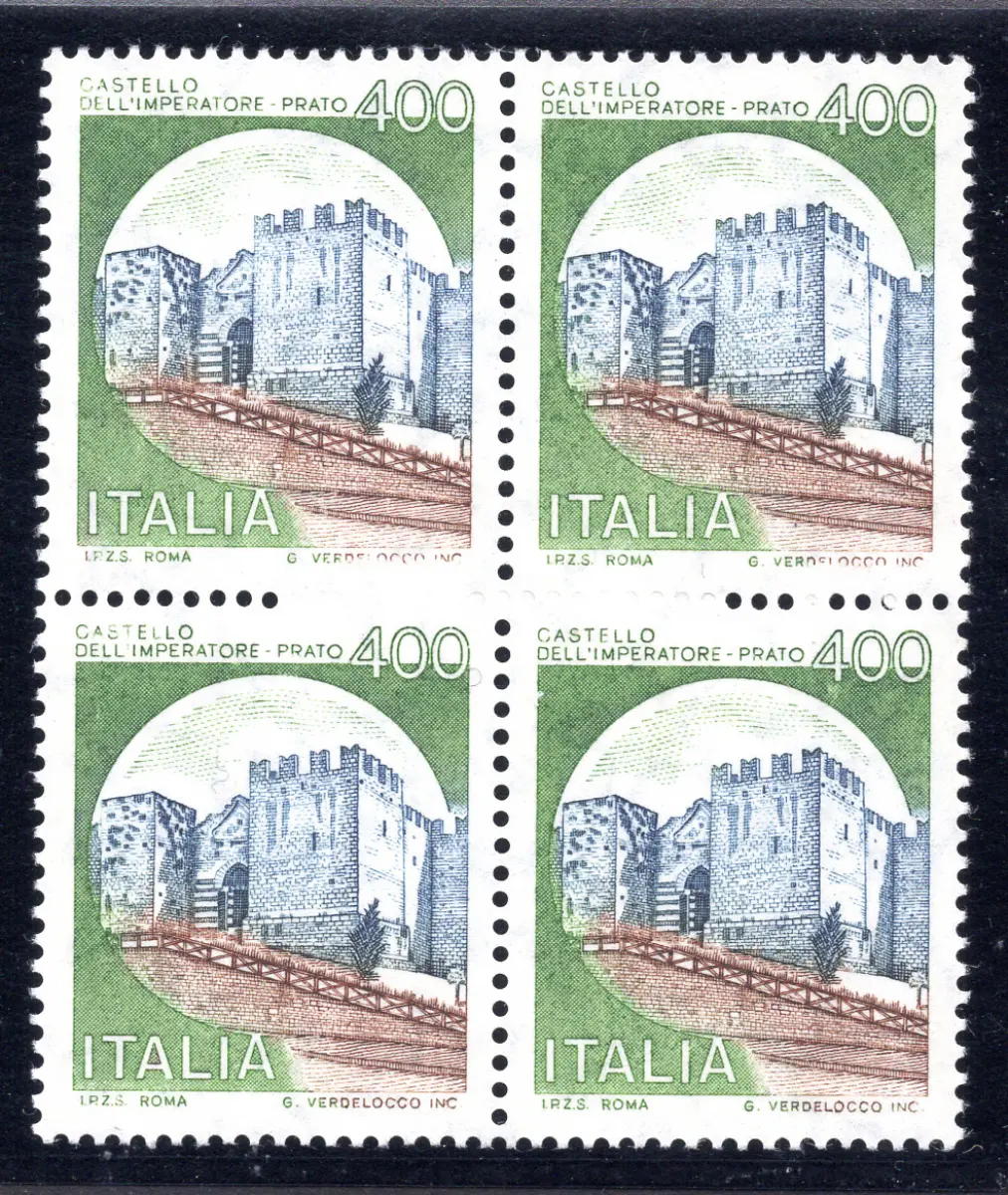 MNH - Vollgummi - - Castelli Lire 400 Nr. 1520 Viertel mit horizontaler Verzahnung in der Mitte unvollständig (blind) - ungewöhnliche Sorte für Spezialisten - Neu perfekt mit Vollgummi Cod. 2727/WEB