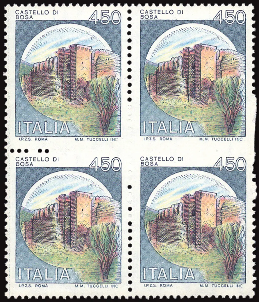 MNH - Vollgummi - - Castelli Lire 450 Nr. 1521 Viertel mit unvollständiger Bohrung und fehlt so sehr, dass das rechte vertikale Drehmoment in der Mitte praktisch ungezahnt ist (Sass. n. 1521l) - Selten - Kat. euro 1.800 Cod.716/182