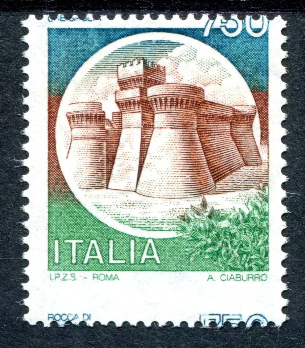 MNH - Castelli Lire 750 Exemplar mit nach unten verschobener Verzahnung - Neu perfekt Cod. 319/WEB