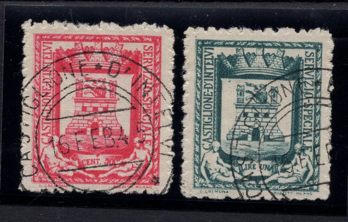 Gebraucht - Castiglione d'Intelvi - Wappen Nr. 16/17 zwei Werte mit umgekehrten Farben - Ungewöhnlich - Kat. euro 70 Cod. 1041/17