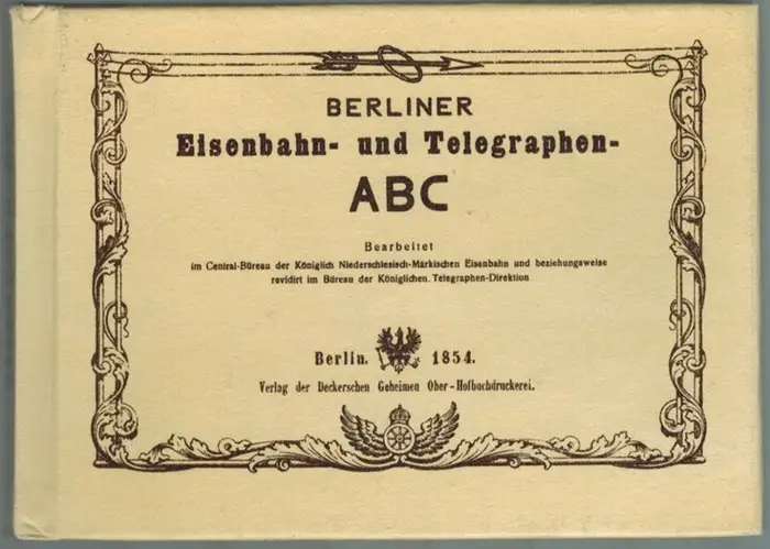 Central-Büreau der Königlich Niederschlesisch-Märkischen Eisenbahn (Hg.): Berliner Eisenbahn- und Telegraphen-ABC. Reprint der Originalausgabe [Berlin, Verlag der Deckerschen Geheimen Ober-Hofbuchdruckerei] 1854 Leipzig, Zentralantiquariat, 1987.