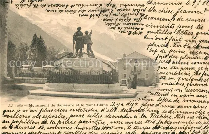 Chamonix Monument de Saussure Mont Blanc Chamonix postalisch gelaufen 1899 Erhaltung siehe scans [KathaD81] Kathoren
