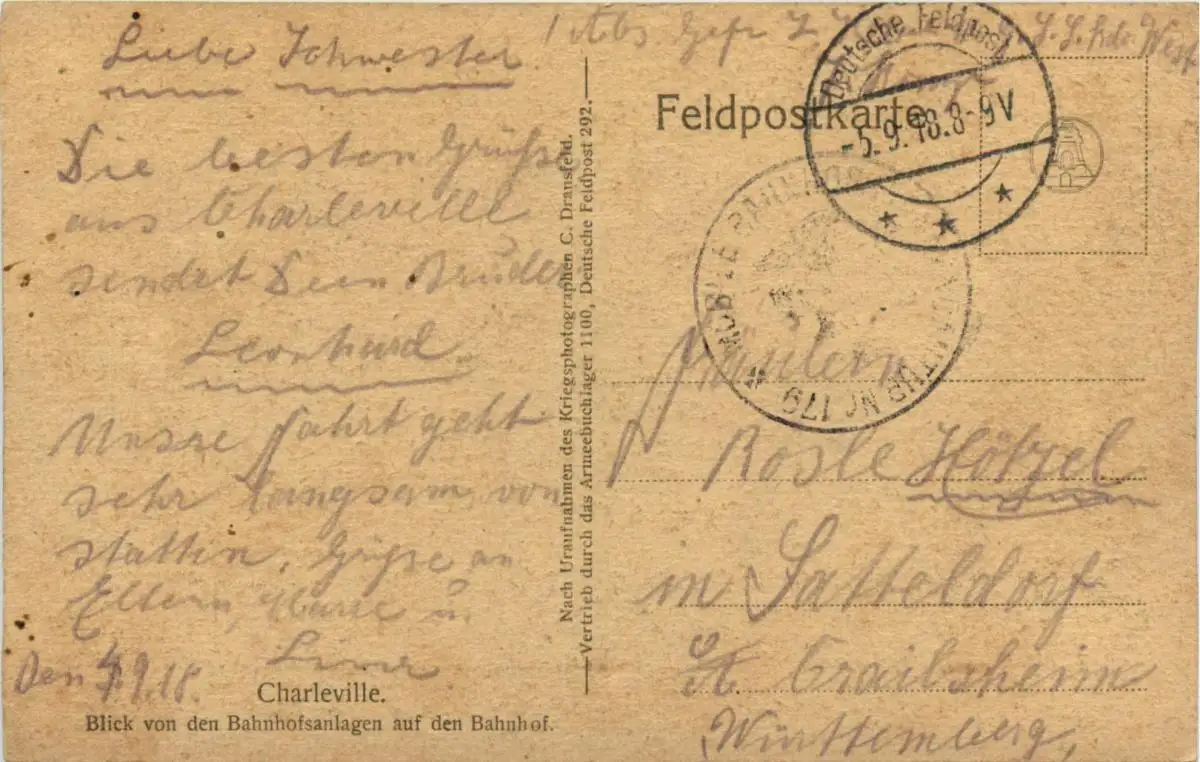 Charleville - Feldpost - Bahnhof -92708