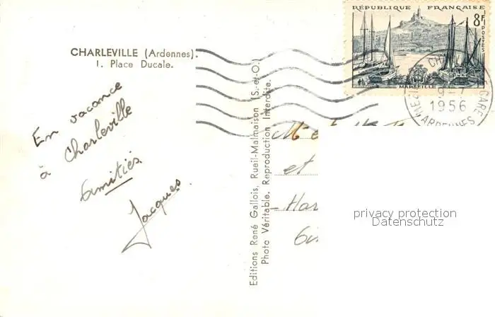 Charleville Place Ducale Charleville postalisch gelaufen 1956 Erhaltung siehe scans [WerneD78] WernPID7