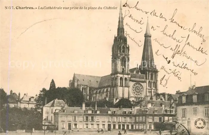 Chartres_Eure_et_Loir Cathédrale vue prise de la Place du Châtelet Chartres_Eure_et_Loir postalisch gelaufen 1921-1965 Erhaltung siehe scans [FriedD77] Frierer