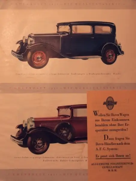Chevrolet Modellprogramm 1931 Automobilprospekt (7727)