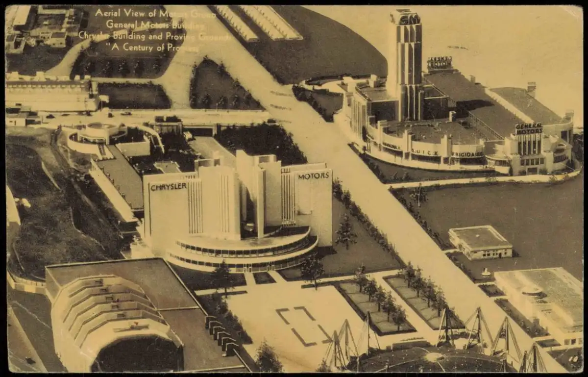 Name: Aerial View Motors Group General Motors Building Chrysler Building Proving Grounds