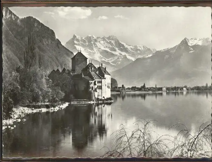 Chillon Chateau Montreux postalisch gelaufen 1954 gute Erhaltung Alte Ansichtskarte Postkarte hz Cassa