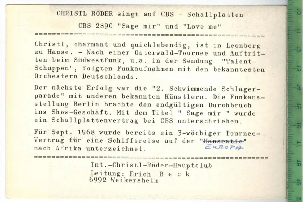 Christl Röder mit Autogramm, Rückseite Kurzbiographie