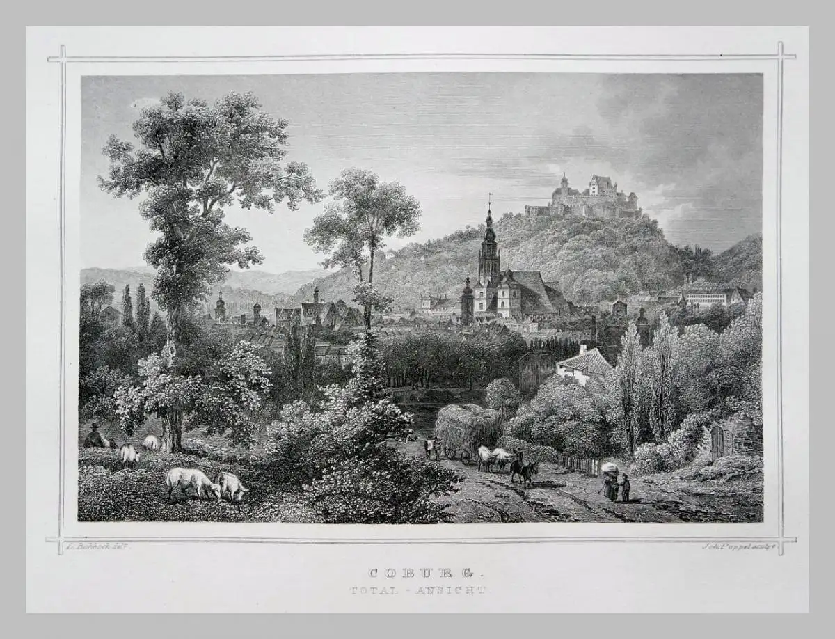 Coburg. Total Ansicht. Originaler Stahlstich, Poppel um 1850
