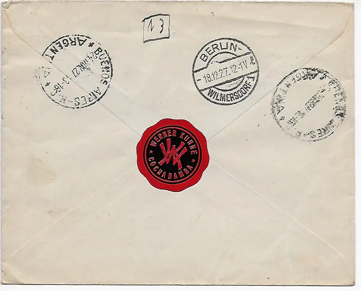 Cochabamba to Berlin, R-Zettel Vom Ausland über Bahnpost 1927