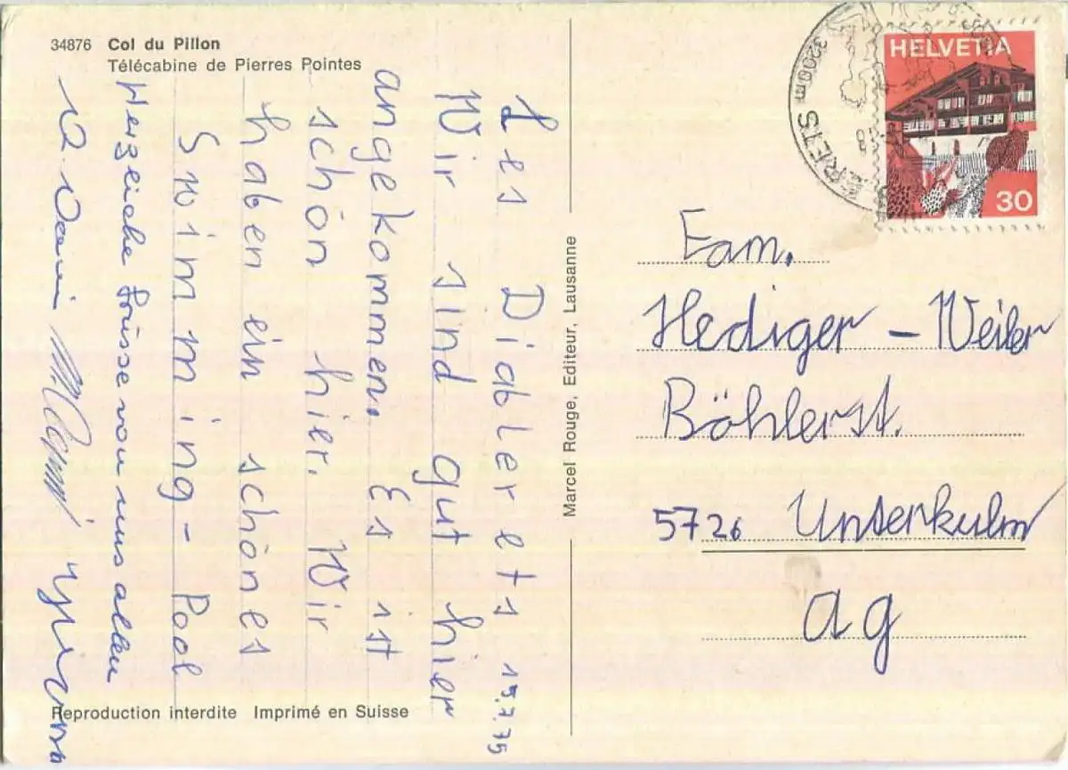 Col du Pillon - Telecabine de Pierres Pointes - Edition Marcel Rouge Lausanne - leichte Gebrauchsspuren (E90536) gel. 1975