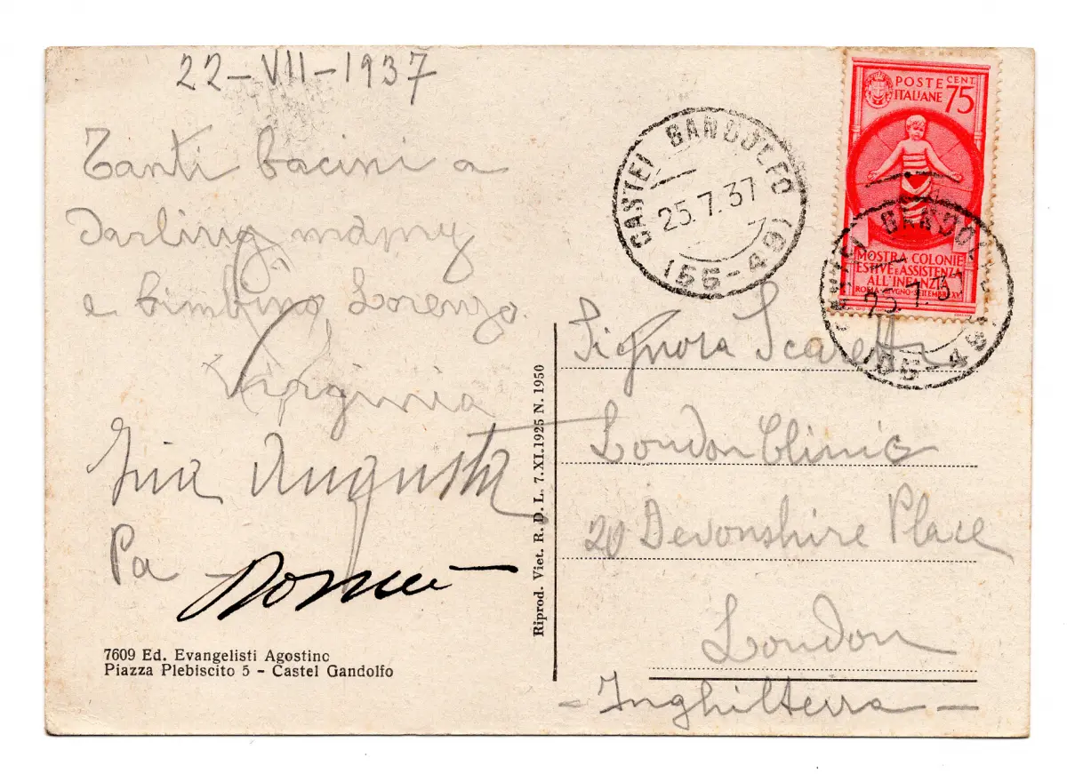 Postkarte - Sommerkolonien Cent. 75 Nr. 411 isoliert auf Auslandskarte am 25.7.37 - Ungewöhnlich - Kat. euro 120 Cod. 34/17