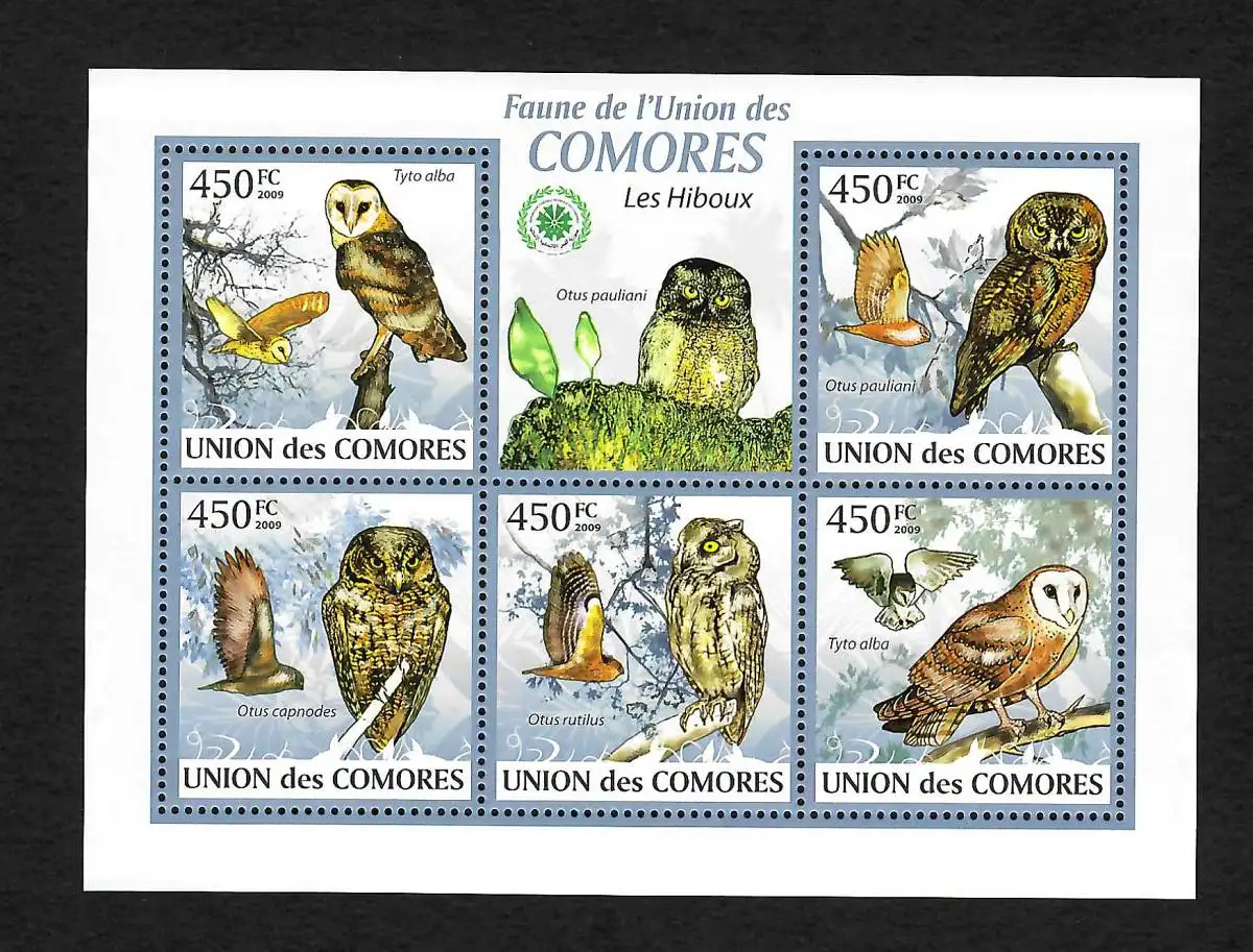 Comoren 2009: Eulen - Otus, Briefmarken Block, postfrisch