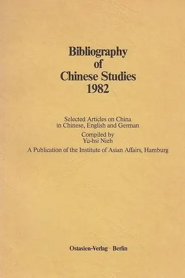 Titel: Bibliography of Chinese Studies 1982. Selected Articles on China in Chinese, English and German. Compiled by Yu-hsi Nieh. A Publication of the Institute of Asian Affairs, Hamburg