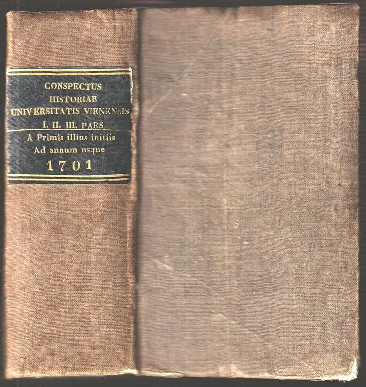 Bemerkungen: VD18 90934695 [Tl. 3]; Gugitz 3859 - Erste und einzige Ausgabe dieser umfassenden Geschichte der Wiener Universität. - Teil 2: MITTERDORFFER, Sebastian. Conspectus Historiae Universitatis Viennensis ex actis veteribusque documentis. Ab Anno MCCCCLXV usque ad Annum M. D. LXV. Wien Typis Mariae Teresiae Voigtin1724. - Teil 3: Ders. Conspectus Historiae Universitatis Viennensis ex actis veteribusque documentis. Ab Anno M. D. LXV usque ad Annum M. D. CC. I. deductae. Wien, Wolfgang Schwendimann 1725. - [Und: Zum 3. Tell gehörend]: Instrumenta Publica, Quibus per Ferdinandum II. Romanorum Imperatorem felicissimae et gloriosissimae memoria, Almae celeberrimaequae Universitati Viennensi Caesaraeum Societatis Jesu Ciollegium Viennensee unitum & incorporatum fuit: Ferdiandei III. Romanorum Imperatoris Decreto confirmata. - Das Werk enthält unter anderem eine Liste der Rektoren der Universität Wien vom Jahr ihrer Gründung 1365 bis zum Jahr 1708.