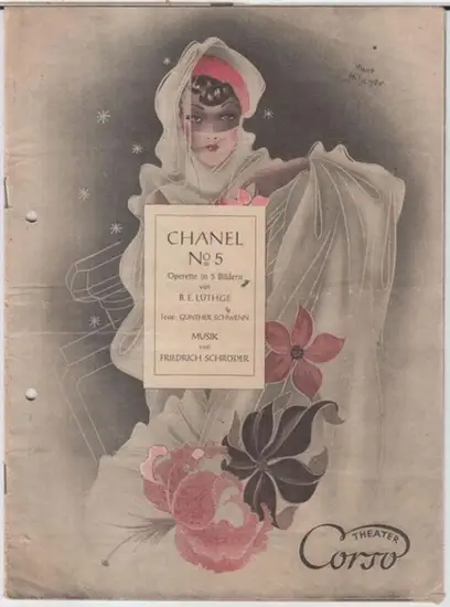 Corso Theater, Berlin. - Intendant: Werner Fuetterer. - illustrationen: Kurt Hilscher: Programmheft zu: Chanel No. 5. - Operette von B. E. Lüthge. - Liedertexte: Günther Schwenn. - Musik: Friedrich Schröder. - Inszenierung: Ralph Maria Siegel. - Mitwirken