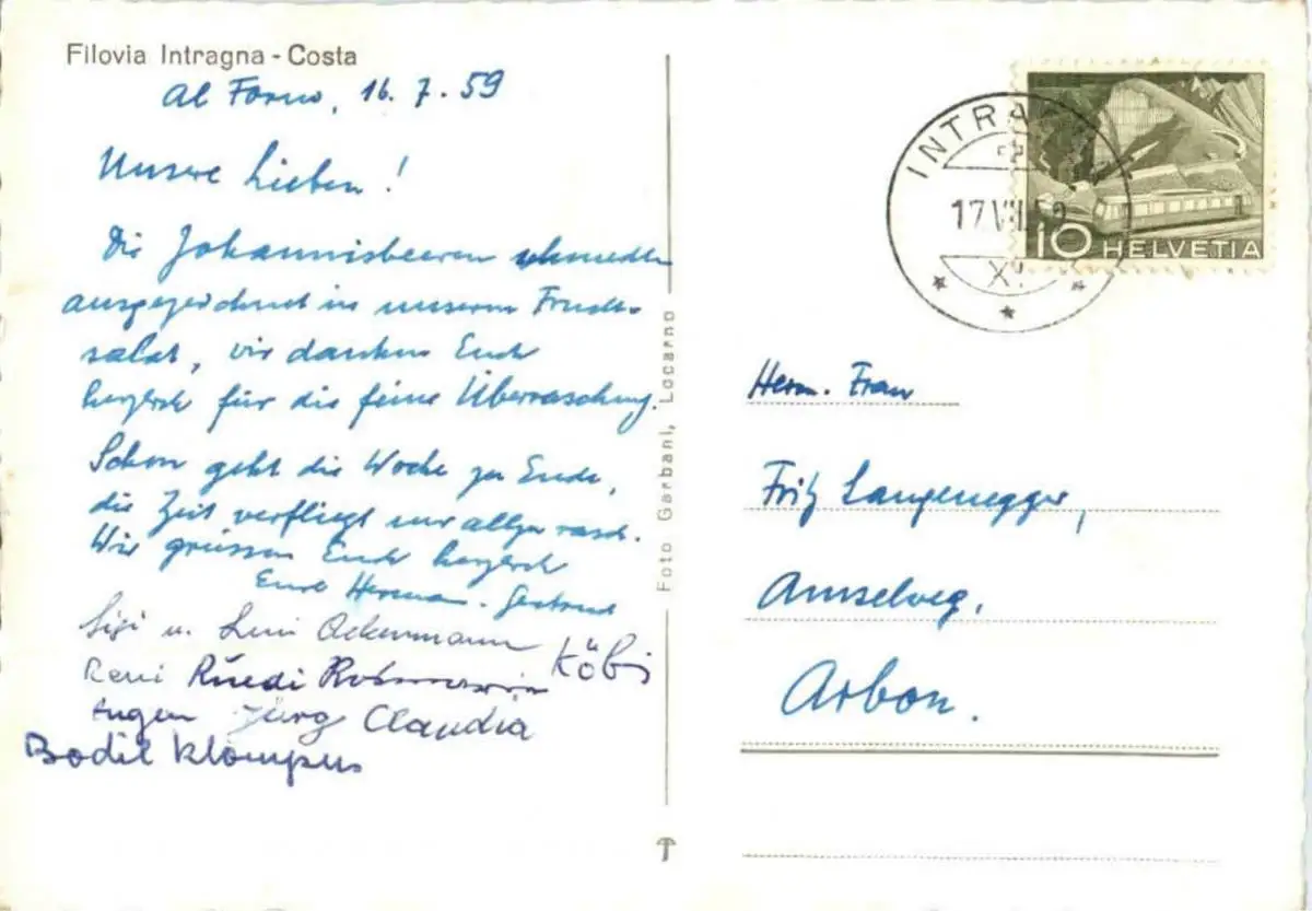 Danke. Alles Bestens. Können Sie mir allenfalls mitteilen, aus welchem Jahr die Postkarte stammt? Besten Dank.