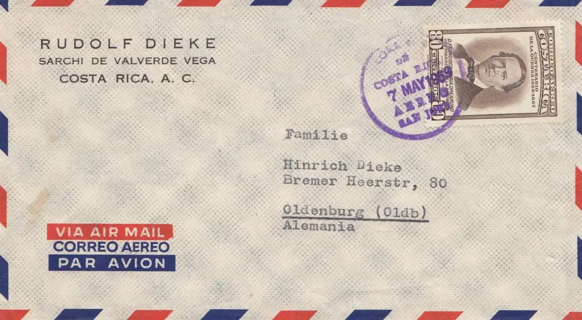 Costa Rica: 1959: Sarchi de Valverde Vega to Oldenburg