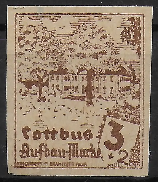 Cottbus Aufbau Marke MiNr. 2 U, winziger Gummifehler, *