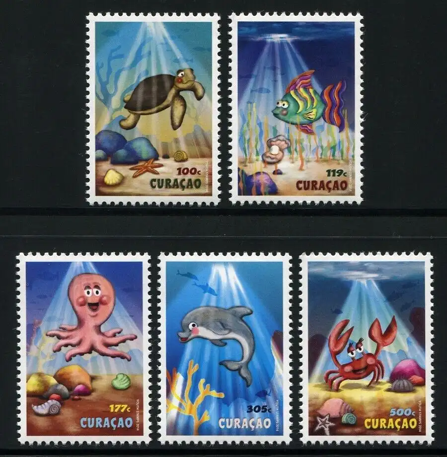 Curacao 2014 Jugendhilfe Meerestiere Schildkröte Fisch Delphin Krebs MNH
