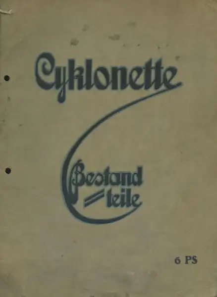 Cyklonette 6 PS Ersatzteilliste ca. 1920