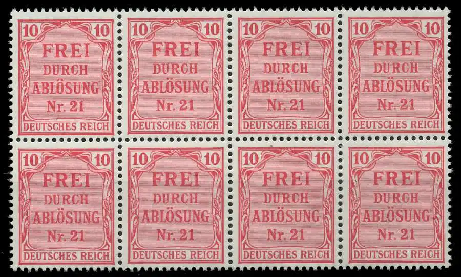 10 Pfg Wert aus der Zähl-Dienstmarkenausgabe für Preussen, 8er Bogenteil, die Marken stammen aus einem Bogen mit HAN und Plattennummer